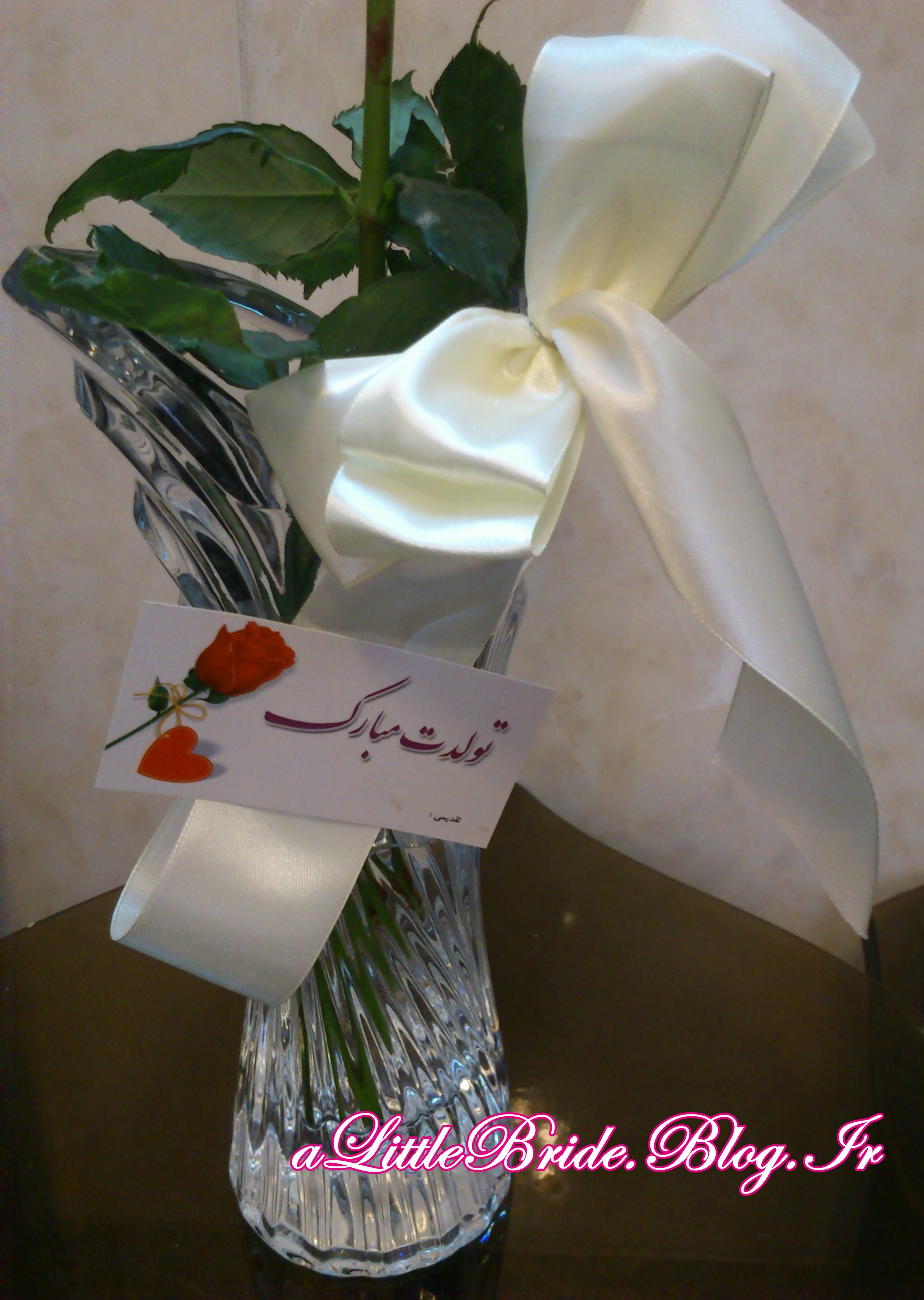 تولد کوچولو با این کیک و یه شاخه گل (پاپیون شو جدا کردم برگ های اضافیم ریختم